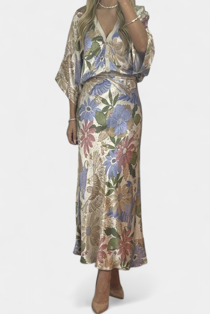 Shae Conjunto Suave de Blusa y Falda de Cola de Pez Floral
