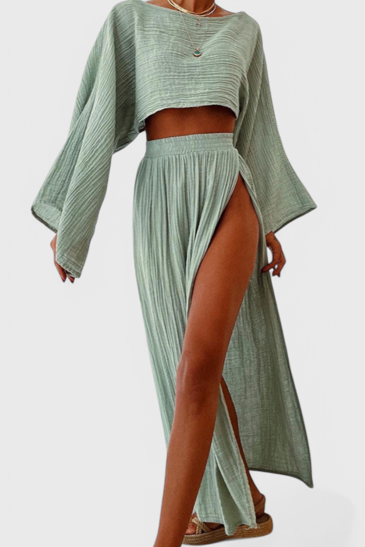Portia Conjunto de Algodón y Lino con Abertura Lateral