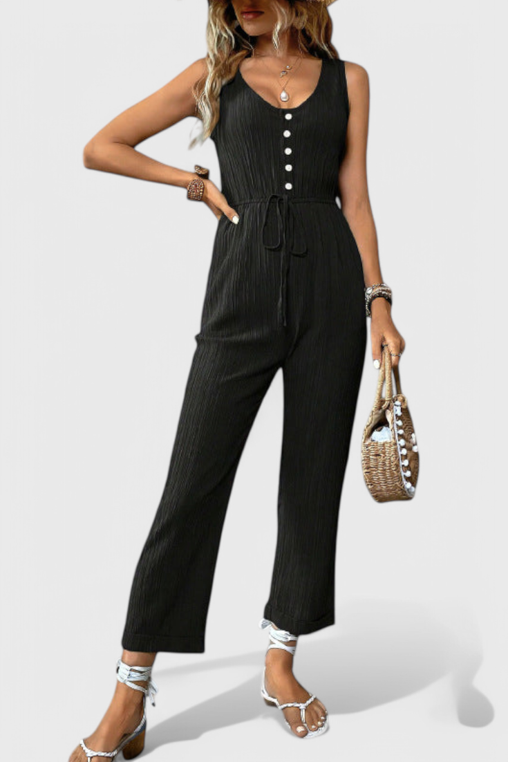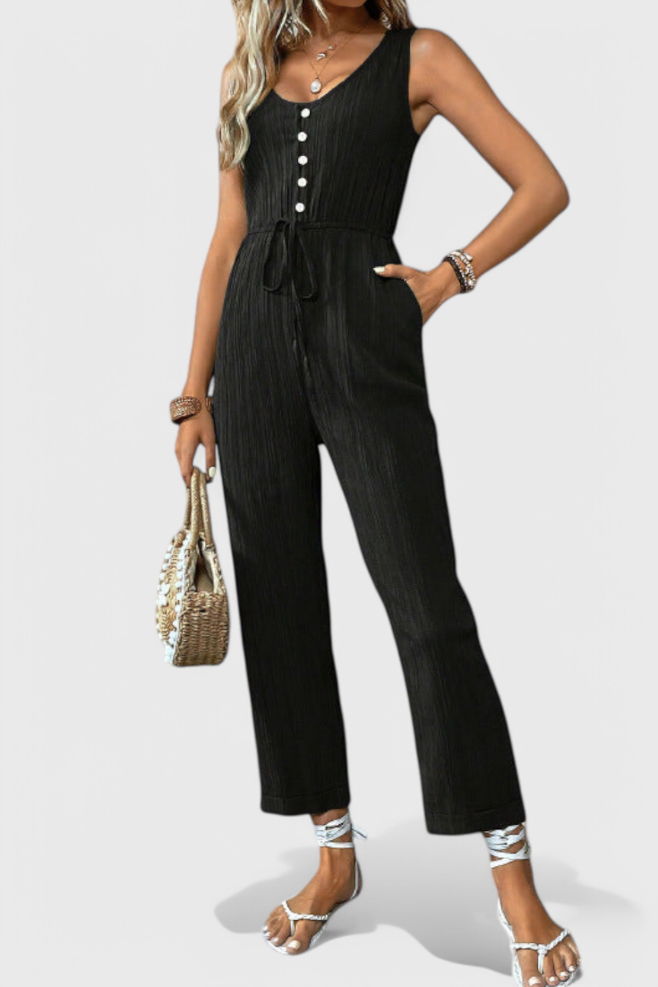 Pulido, transpirable e infinitamente versátil—Marisela es tu opción para una elegancia sin esfuerzo. Confeccionado en una mezcla de algodón texturizado, este mono sin mangas presenta un favorecedor escote en V, una cintura definida con cinturón y una silueta recta y limpia. Ya sea que salgas a un brunch o te vistas para una velada de verano, ofrece comodidad con sofisticación moderna.