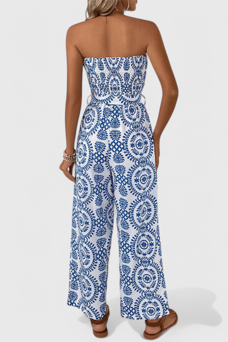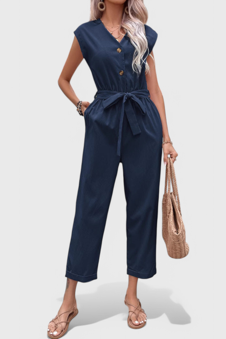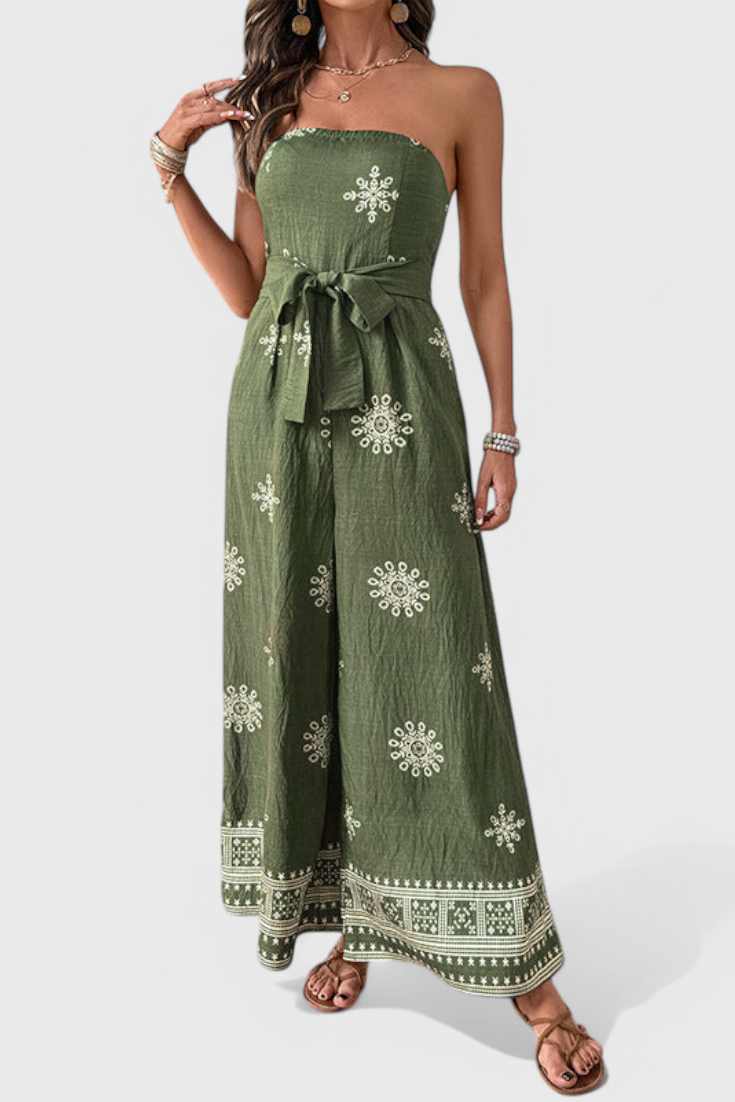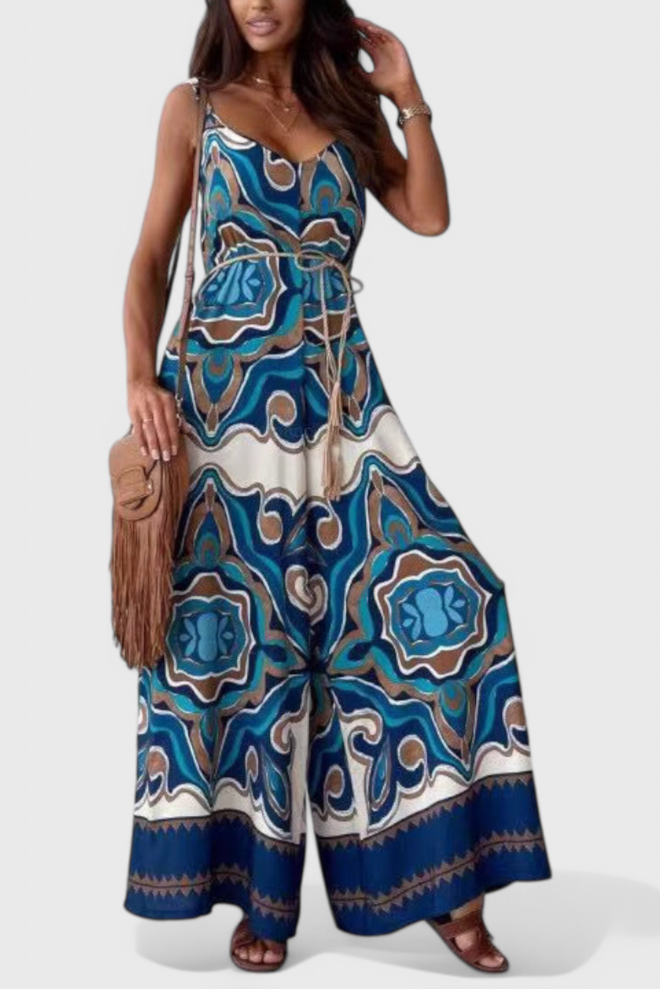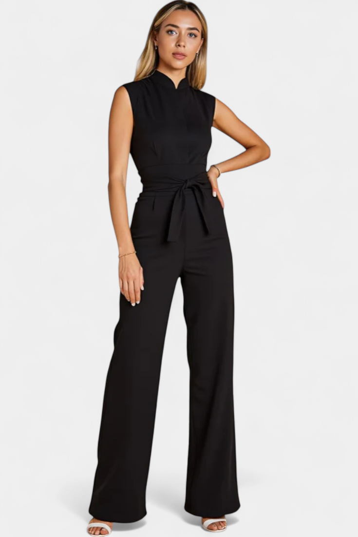Ariane Mono de Pierna Ancha con Escote en V y Cintura con Lazo