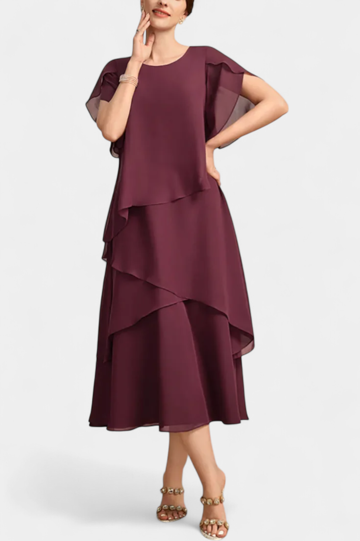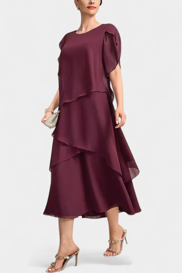 Diseñado para realzar sin apretar, Cornelia es la opción ideal para quienes buscan estilo sin sacrificar la comodidad. Su corte amplio en forma de A con capas asimétricas disimula con gracia y aporta ligereza a cada movimiento. Perfecto para bodas, cenas o celebraciones donde buscas sentirte segura, elegante y libre.