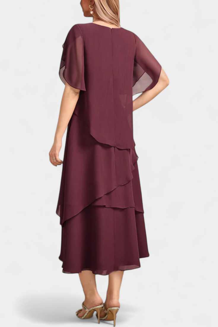 Cornelia Vestido Asimétrico de Chiffon con Silueta Flotante