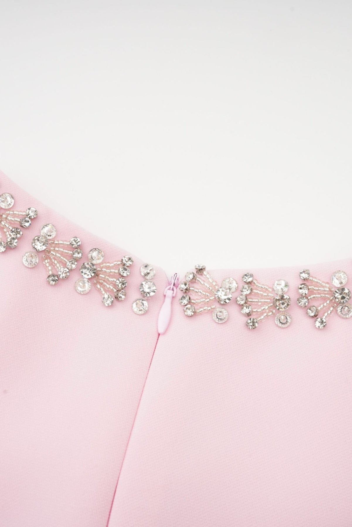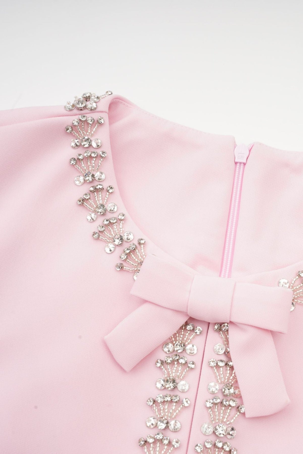 Vestido midi Linda acampanado con lazo de cristal y elegantes detalles