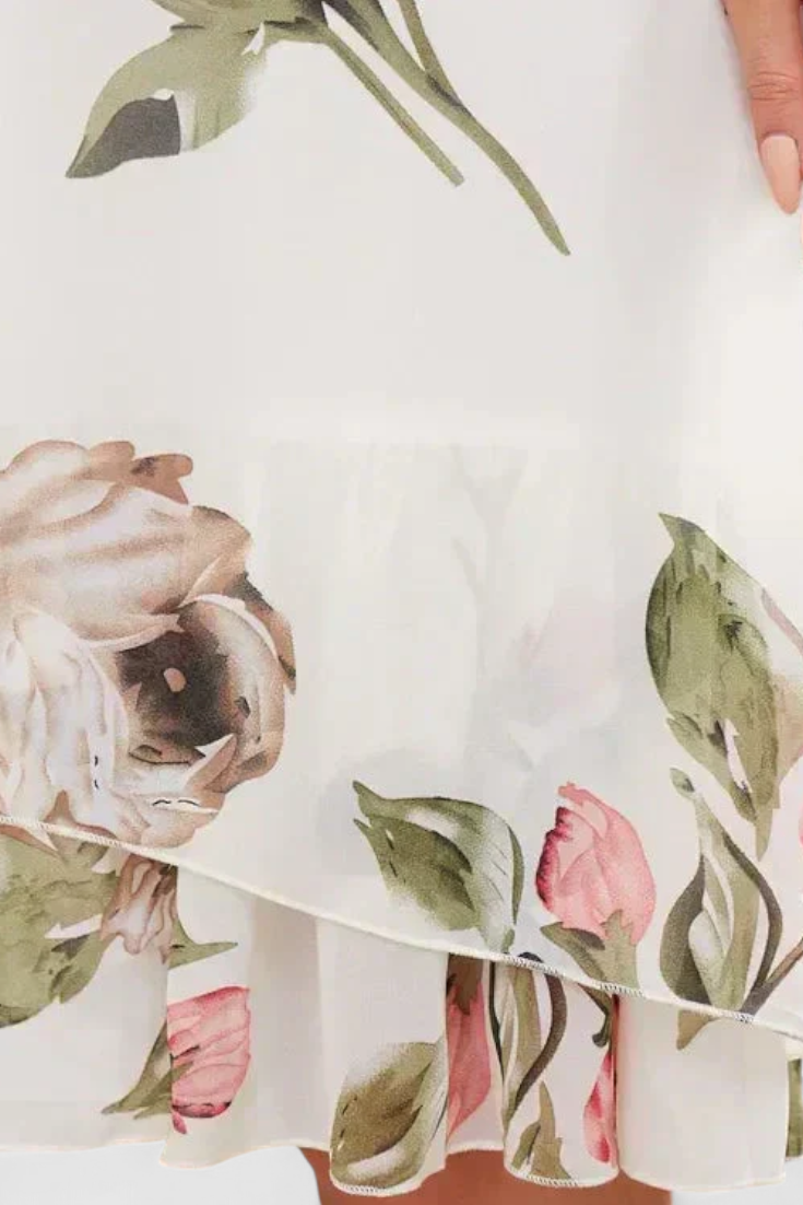Ligereza etérea con un diseño que abraza la feminidad con suavidad y frescura. El vestido Tameka combina la fluidez de la gasa con un estampado de pétalos sutiles, creando una silueta romántica y envolvente. Sus mangas transparentes y su escote cruzado añaden un toque delicado que se mueve con gracia y naturalidad.
