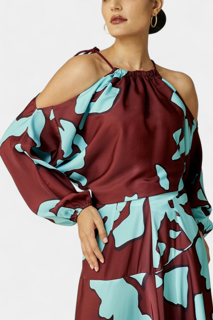 Vestido largo Dana con estampado de acuarela y parte delantera torcida